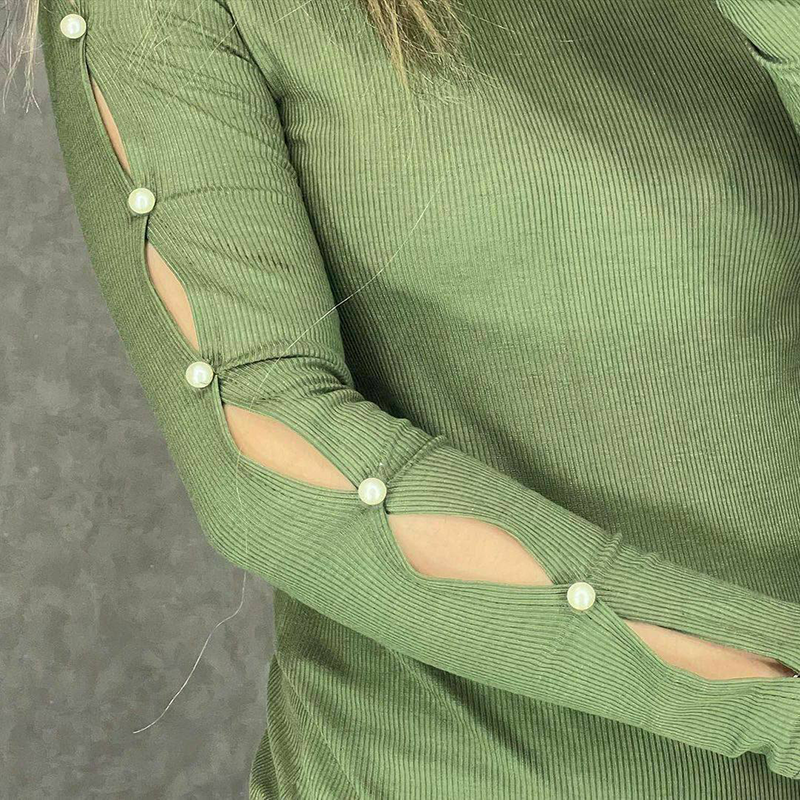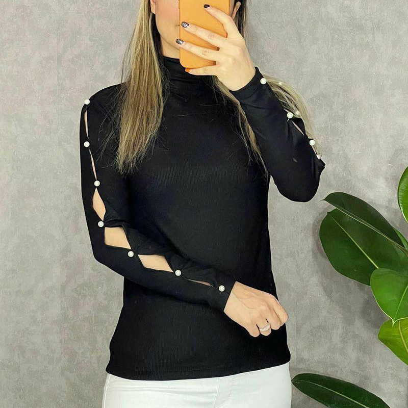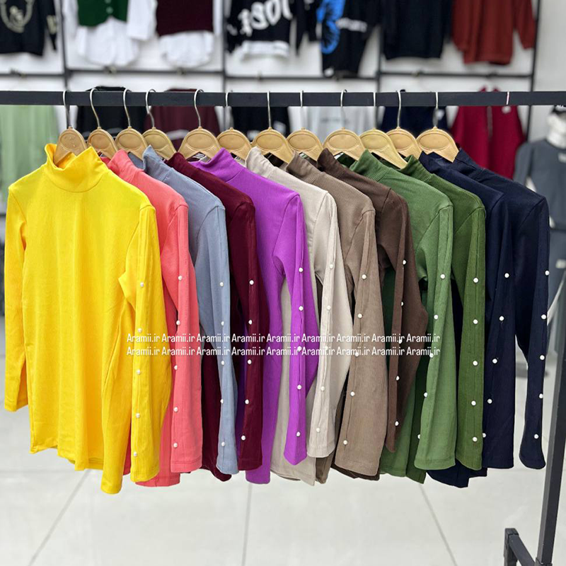 بلوز آستین مروارید یقه ۶ سانتی (پک 6 عددی)