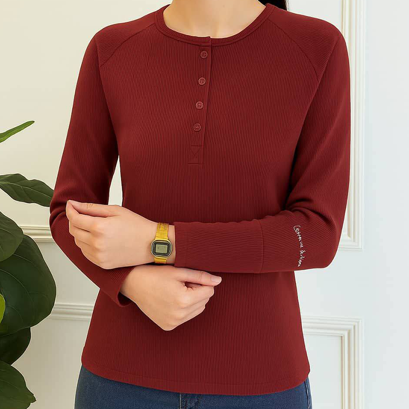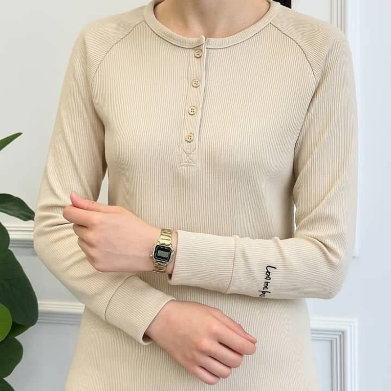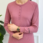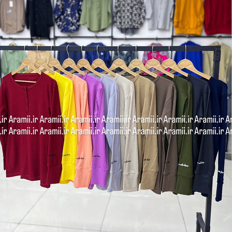 بلوز یقه گرد ۴ دکمه آستین چاپ (پک 6 عددی)