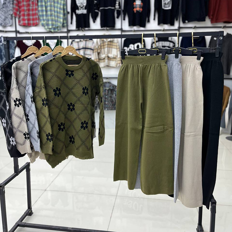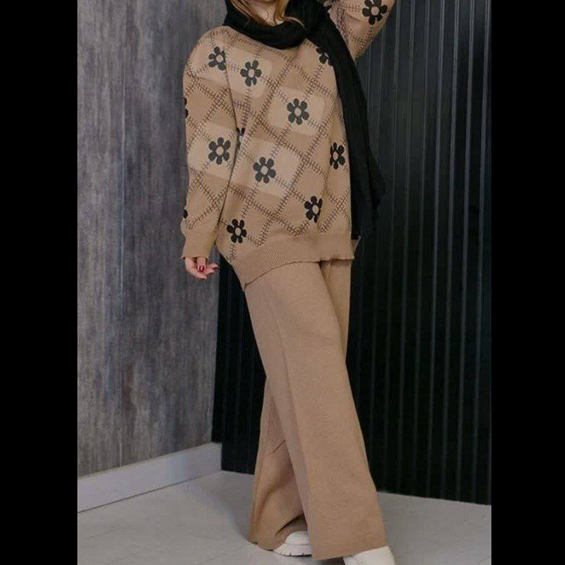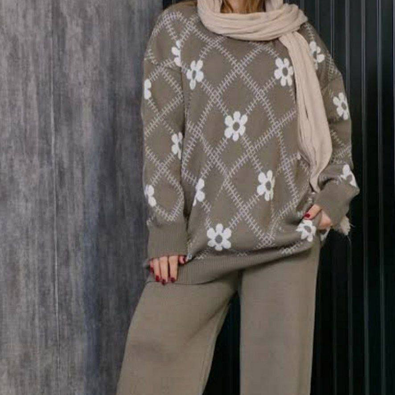 ست بلوز و شلوار بافت گلدار (پک 4 عددی)