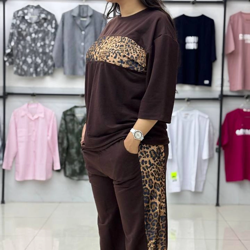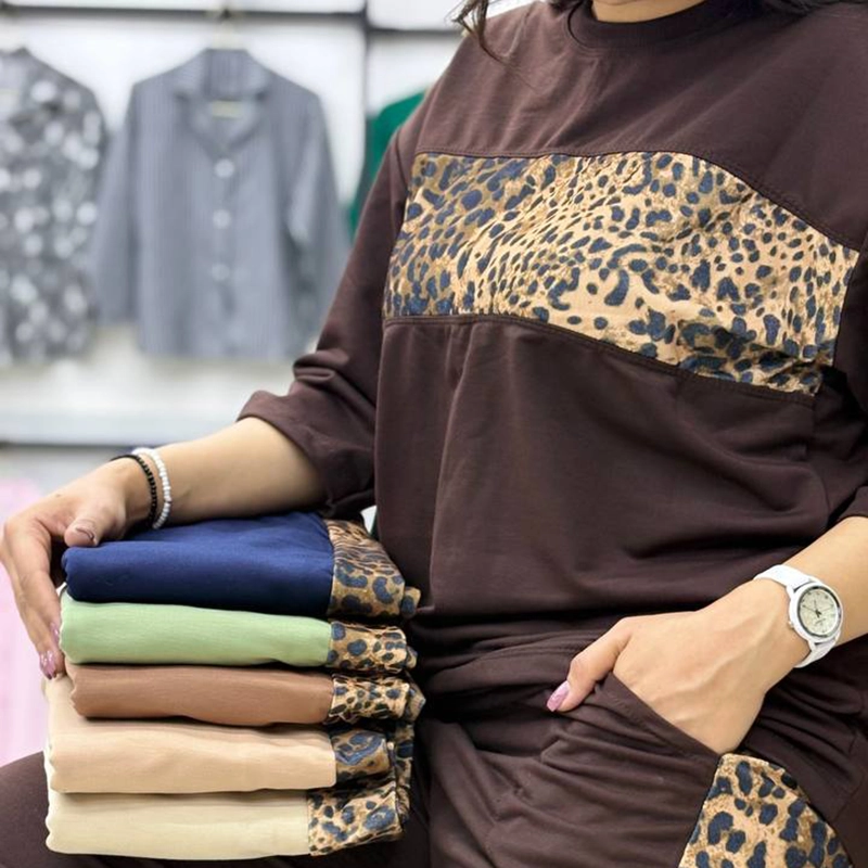 ست تیشرت و شلوار بگ پلنگی (پک 3 عددی)