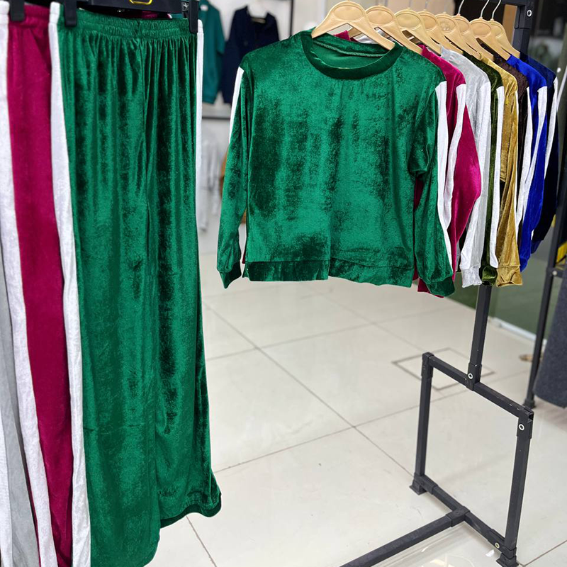 ست کراپ آستین دار و شلوار نیم بگ (پک 6 عددی)