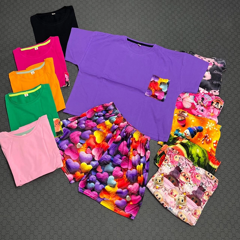 ست کراپ تک جیب و شورتک مخمل استکیری ( پک 3 عددی )