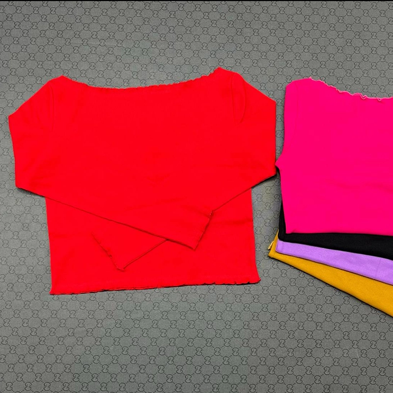 کراپ پیلی دوزی یقه قایقی (پک 5 عددی)